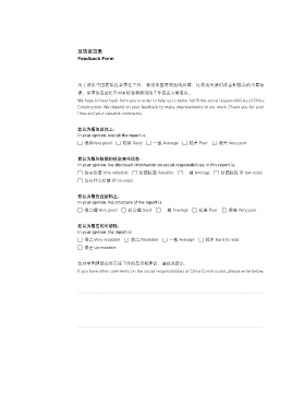 Actions taken in response to incidents of corruption 为了改进中国建筑社会责任工作,我们希望得到您的反馈,这将成为我们改善和提高的重要依