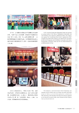 展指引》,明确岗位序列,由高到低分为总监级、副总监 2011年,公司摄影协会获批成为中国摄影家协会团体 In 2011, the China Construction Photography Society was approved