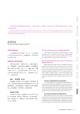 农民工是公司生产一线的主要力量,也是公司重点关 Migrant workers are a major force on the Company’s front line of 安