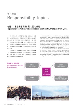 according to the deployment of the Chinese government. 员工处境危险。公司大多数项目所在地聚集在利比亚 Risky situation: as most of projects are in Tripoli, the capital