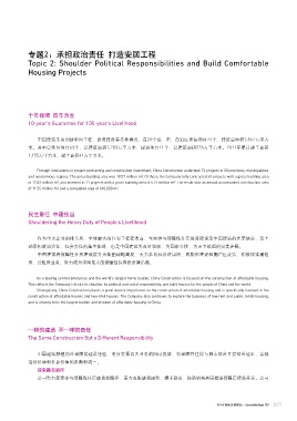 提供了大量人力、物资以及外交支援。当地员工、供应商 and diplomacy. At critical stages, local employees and suppliers As a leading central enterprise and the world’s largest home builder, China Construction is focused on the construction of affordable housing.
